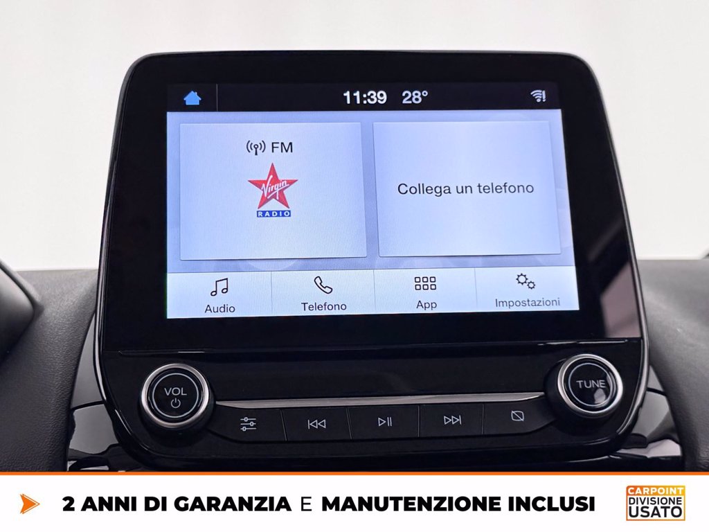 Esempio di finanziamento Idea Ford a € 13.120. Anticipo € 0,00 (grazie al contributo dei FordPartner), 36 quote da € 236, escluse spese incasso rata € 5,00, più quota finale denominata VFG pari a € 6.560,00. Importo totale del credito di € 13.510,00 comprensivo dei seguenti servizi facoltativi: . Totale da rimborsare € 15.266,17. Spese gestione pratica € 390,00. Imposta di bollo in misura di legge all'interno della prima quota mensile. TAN 4,95%, TAEG 7,25%. Salvo approvazione Ford Credit Italia Spa Km totali 85.000, costo esubero 0,2 €/km. Documentazione precontrattuale in concessionaria. Per condizioni e termini dell’offerta finanziaria fare riferimento alla brochure informativa disponibile presso il Ford Partner o sul sito www.fordcredit.it. Le immagini presentate sono a titolo puramente illustrativo e possono contenere accessori a pagamento. Messaggio pubblicitario con finalità promozionale.