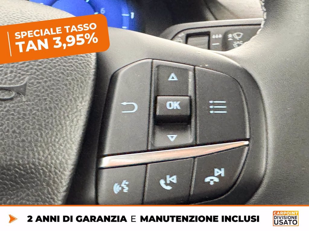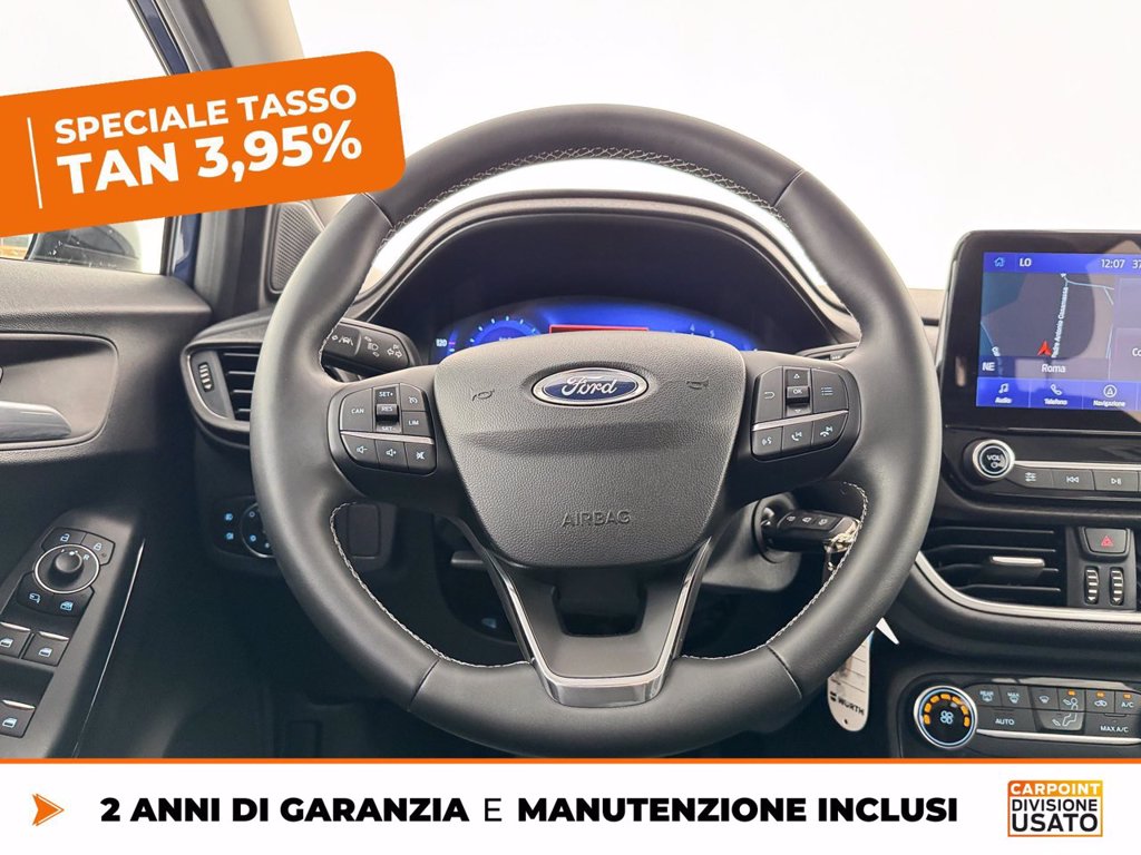 Esempio di finanziamento Idea Ford a € 14.320. Anticipo € 0,00 (grazie al contributo dei FordPartner), 24 quote da € 209, escluse spese incasso rata € 5,00, più quota finale denominata VFG pari a € 10.740,00. Importo totale del credito di € 14.710,00 comprensivo dei seguenti servizi facoltativi: . Totale da rimborsare € 15.914,45. Spese gestione pratica € 390,00. Imposta di bollo in misura di legge all'interno della prima quota mensile. TAN 3,95%, TAEG 6,29%. Salvo approvazione Ford Credit Italia Spa Km totali 50.000, costo esubero 0,2 €/km. Documentazione precontrattuale in concessionaria. Per condizioni e termini dell’offerta finanziaria fare riferimento alla brochure informativa disponibile presso il Ford Partner o sul sito www.fordcredit.it. Le immagini presentate sono a titolo puramente illustrativo e possono contenere accessori a pagamento. Messaggio pubblicitario con finalità promozionale.